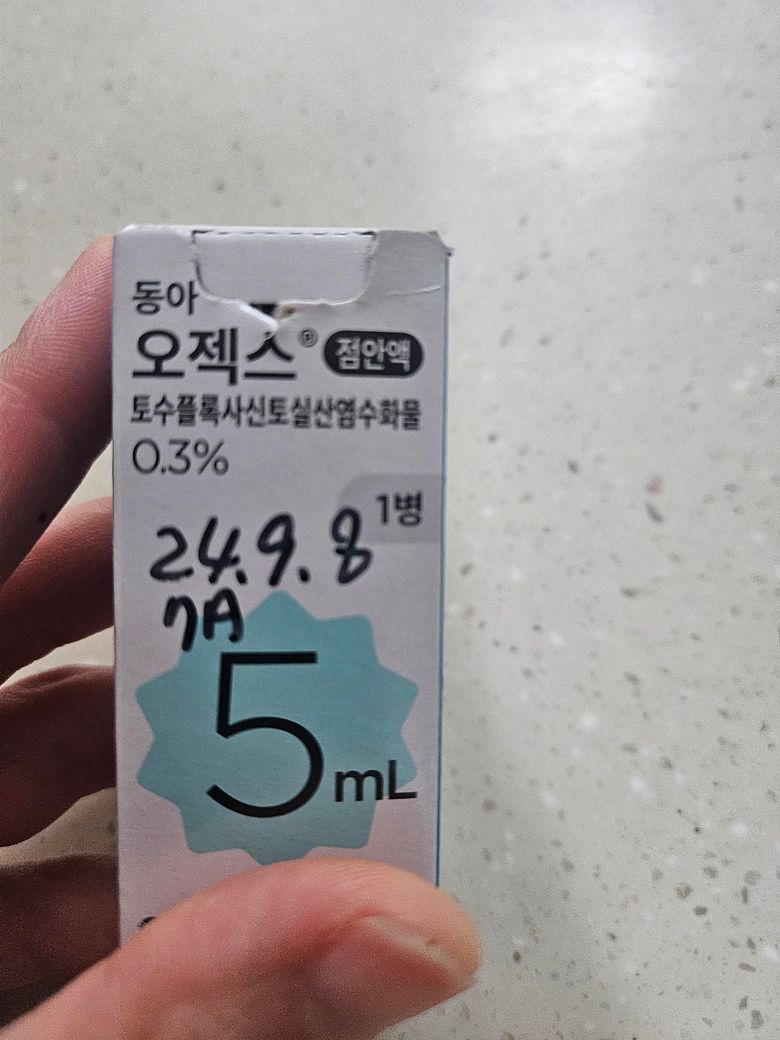 코감기로 인한 약한 눈충혈로 처방받은 오젝스 안약입니다