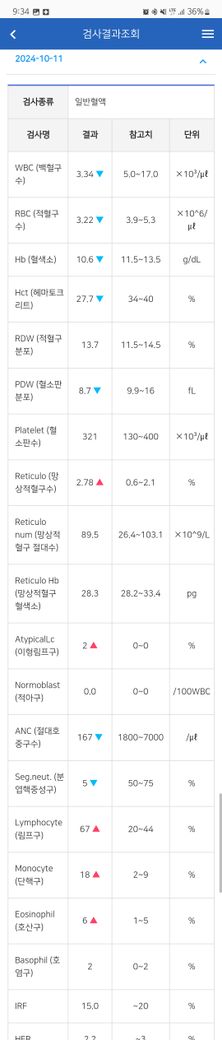 > 10월 3일 열 증상 없음 + ANC 500가까이 올라와서 퇴원 (10월 11일 외래 예약)