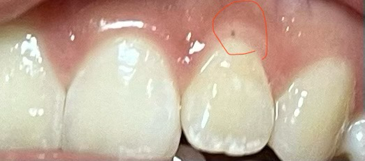 사진으로 봤을 경우에는 검색 물질이 잇몸과 치아 사이에 껴 있는 것으로 보입니다.
