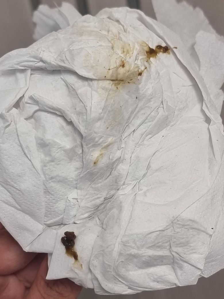오늘 마지막 볼일보고 나서 닦으니 이렇게 묻어나왔는데
