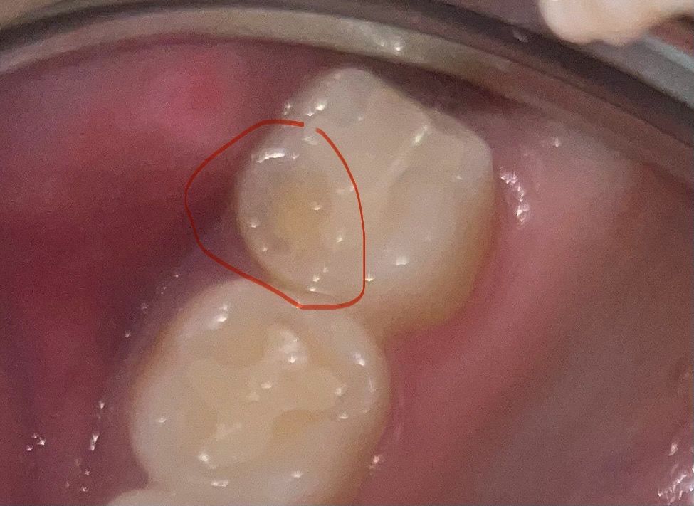 이상한 점은 맨 끝 어금니 4개 다 인레이 했고 다른 이들은 사진 속 26번과 비슷하게 되어있어요. 아래 어금니와도 잘 맞닿구요. 노란색이 상아질이라고 알고있는데 걱정됩니다.