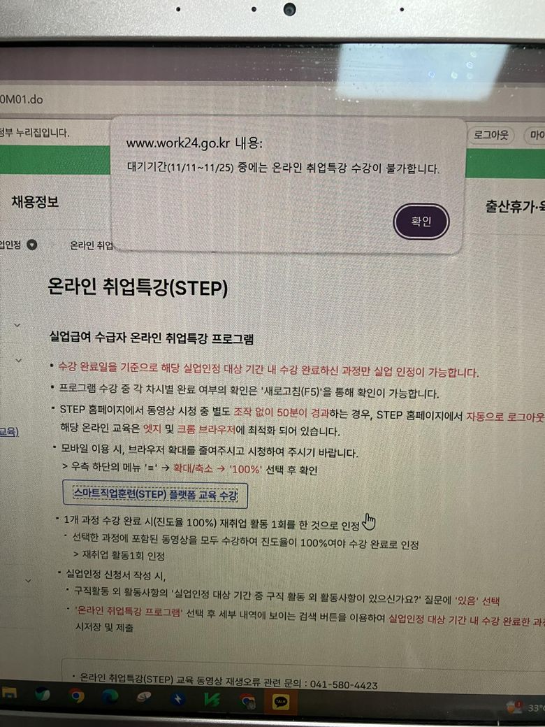 고용센터에서 착오처리해줄테니 강의듣고 내일 방문하라고 했는데,