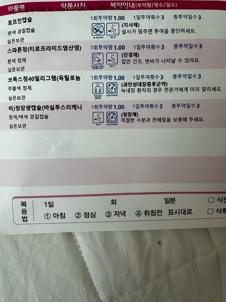 다이옥타헤드랄스멕타이드와 같은 흡착성 지사제 ( 사진장의 로페민정은 로페라마이드 성분으로서 장운동억제제이기에 해당되지 않습니다)