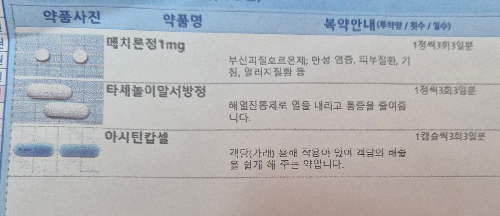다만 당일 먹은 약은 메치론정, 타세놀이알서방정,아시틴캅셀이며 속쓰림 발생 직후 메디카레바시드정 한알을 섭취하였습니다.)