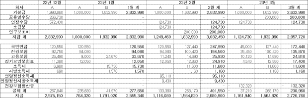 형식적으로 월급을 절반씩 나눠서 받았을 뿐이고,