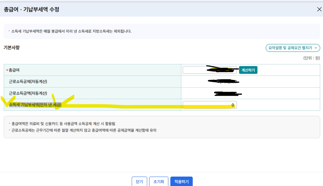 국세청 홈텍스 연말정산모의계산을 미리해봣는데 소득세 기납부세액 먼저 낸 세금이 24년도 매달 급여에서 나가는 소득세+지방세포함해서 말하는건가요?