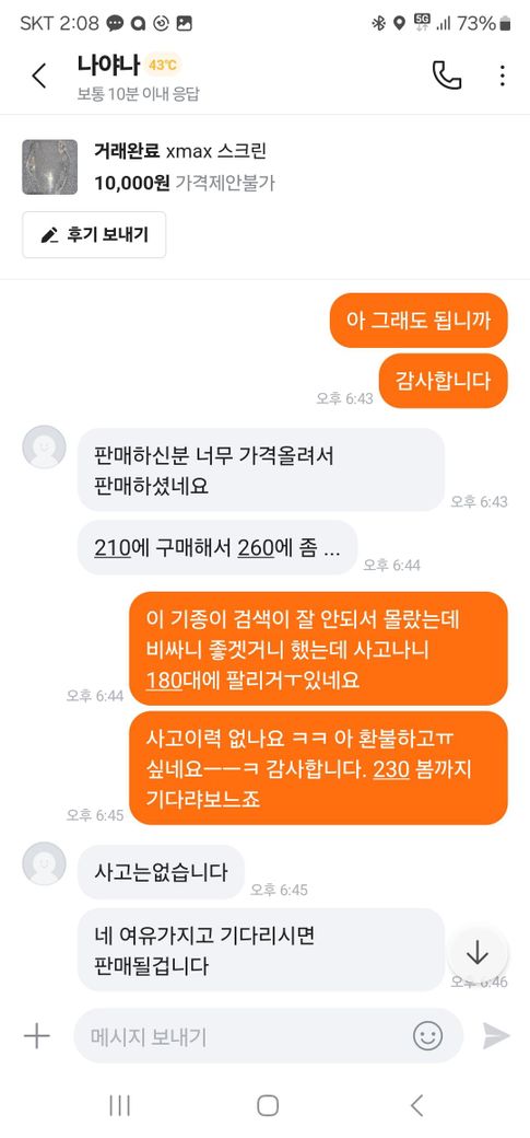 증거 4. 본인은 210 팔았는데 255는 그렇다는말