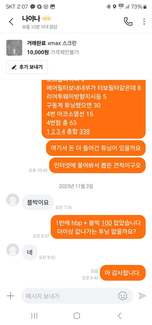 그 이전 소유자를 알아내 물어보니 338만원 이상 카페 내용대로밖에 대답 못했고요
