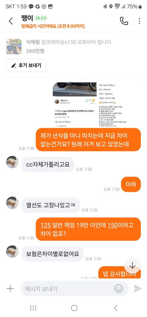 원래 22년식 오토바이를 사고 남들 돈이였는데