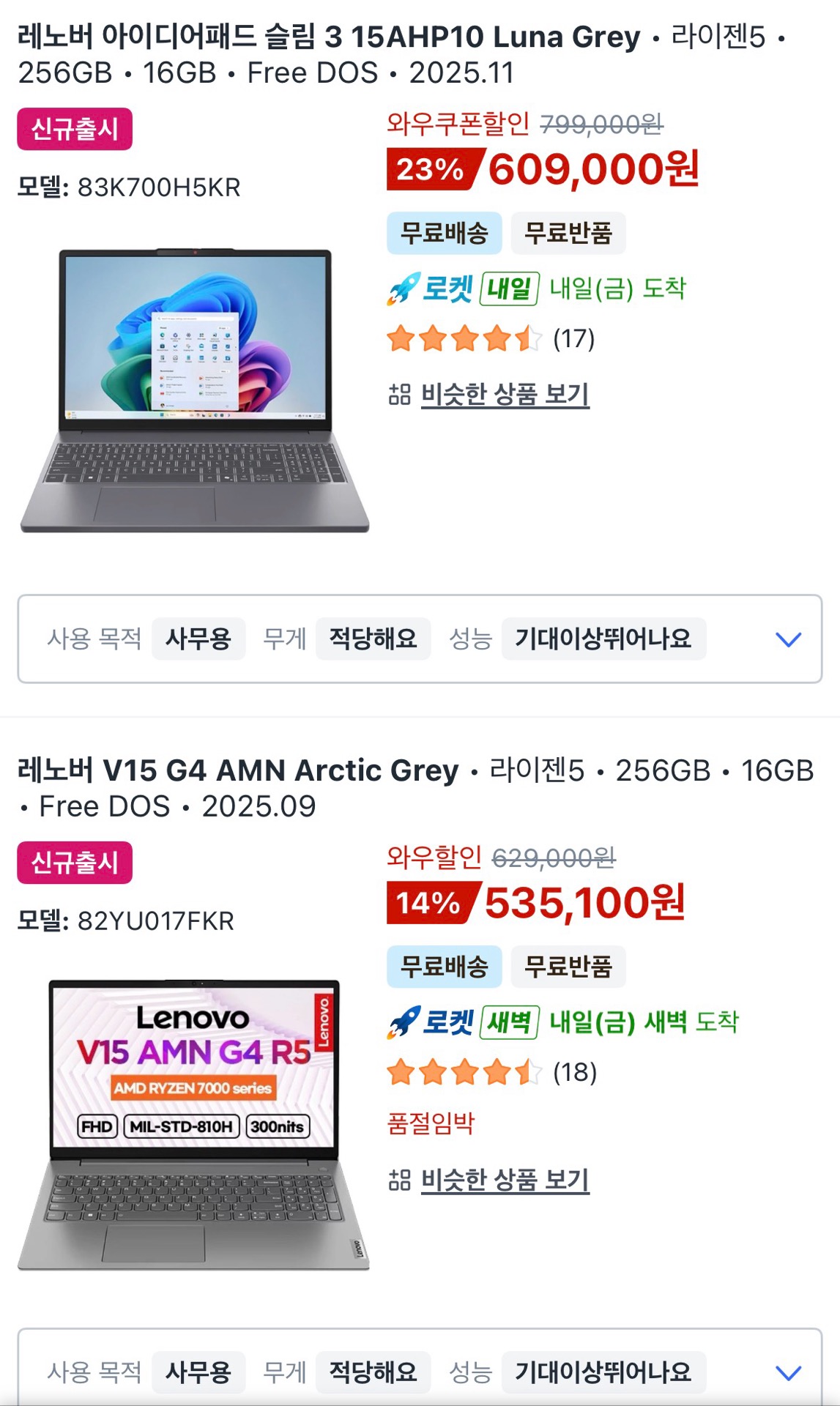 노트북 구매 4위 6위 요런게 보입니다.