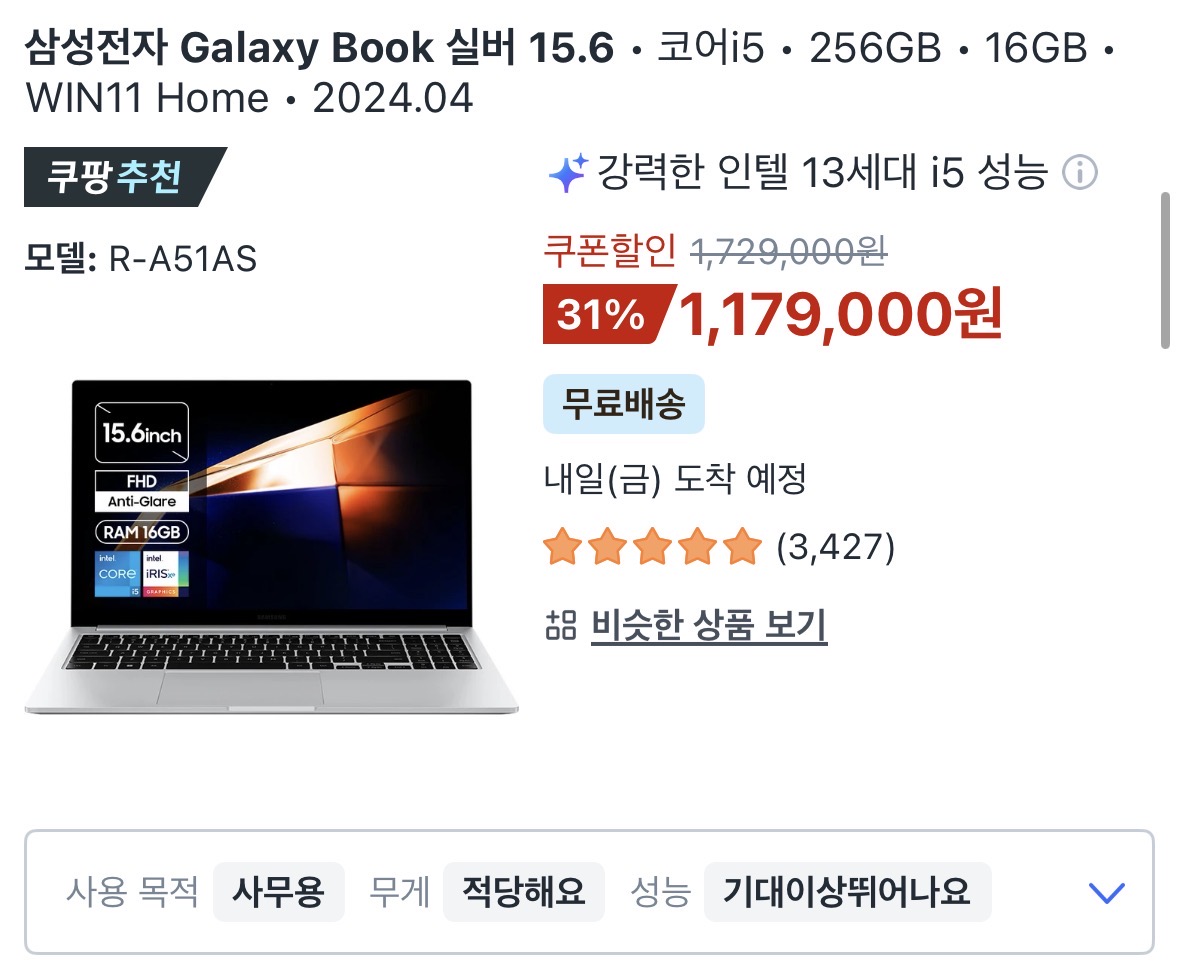 현재 노트북 가격은 비싼 편입니다. 구매할때 부담은 되시겠지만 고사양을 맞춰서 3년이상을 사용하게 해주신다면 나름 부족하지 않게 사용가능할것 같습니다.