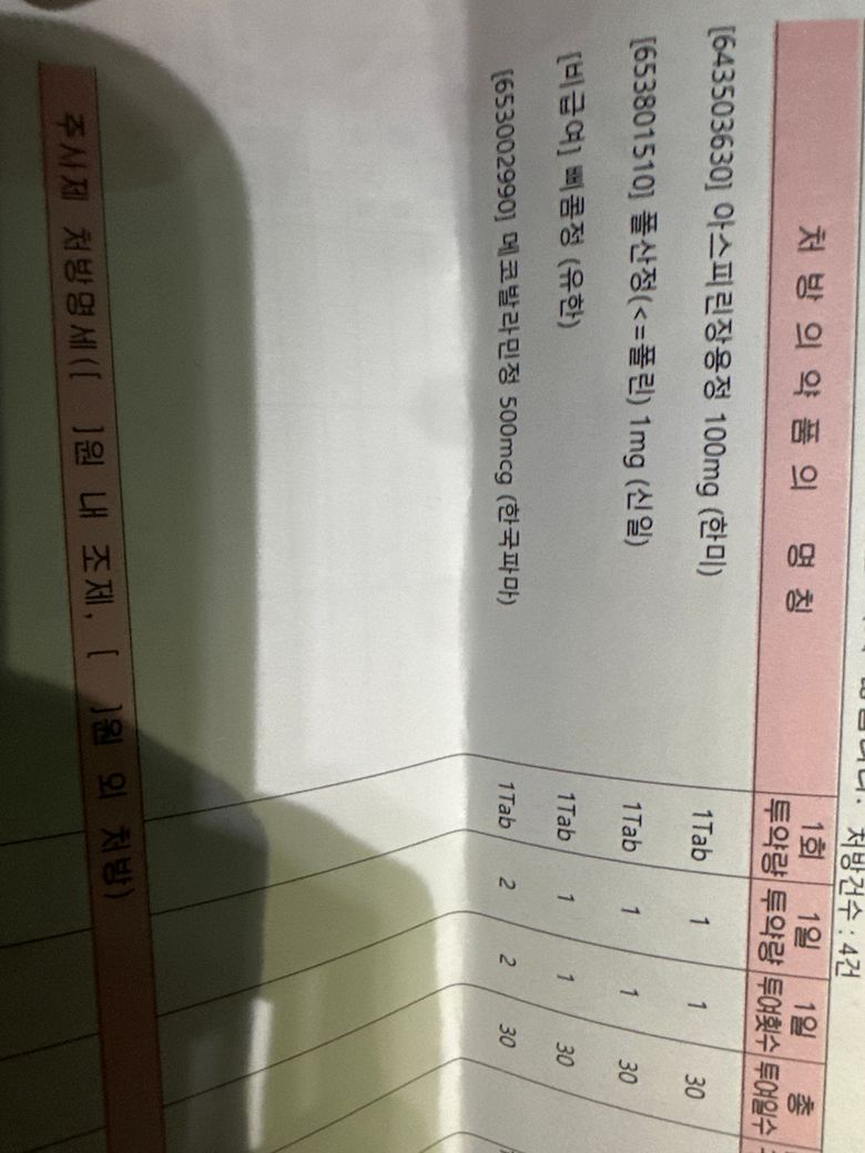 사진과 같이 처방을 받았는데