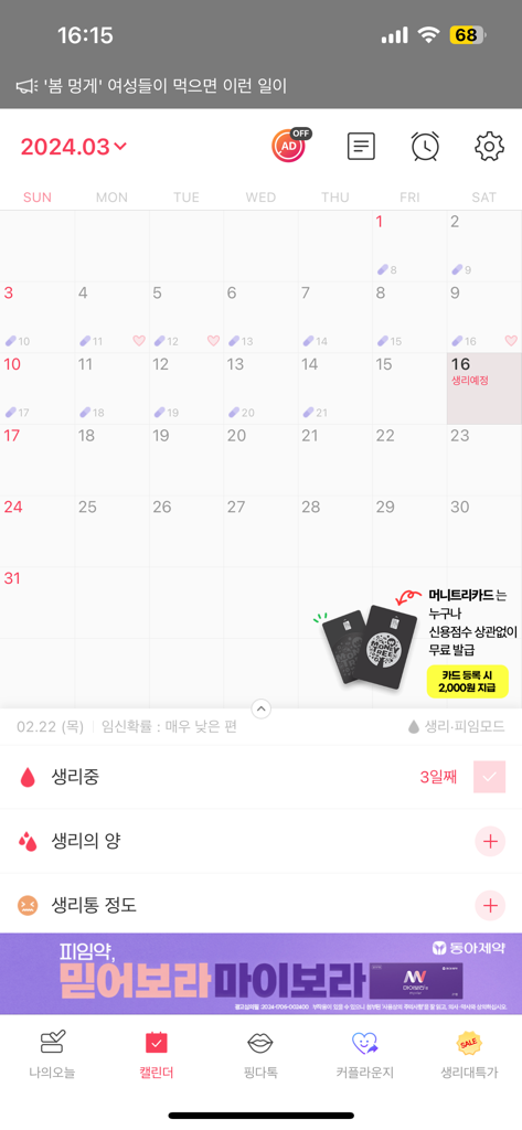 경구피임약 머시론을 5팩째 복용 완료했고, 휴약 이틀차입니다.