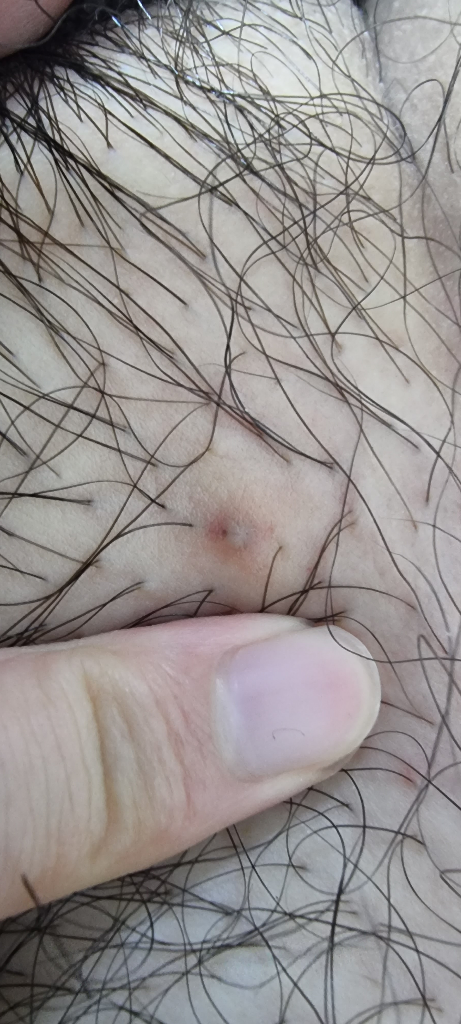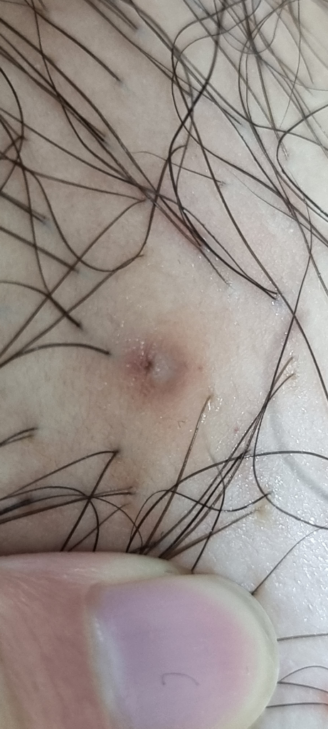 인그로운헤어가 아닐까 싶은데, 그렇다면 약보다는 털을 제거해주는 편이 낫습니다. 다만 더 정밀한 진찰이 필요할 것 같으니 가까운 피부과나 비뇨의학과를 방문해보시기를 권해드립니다.