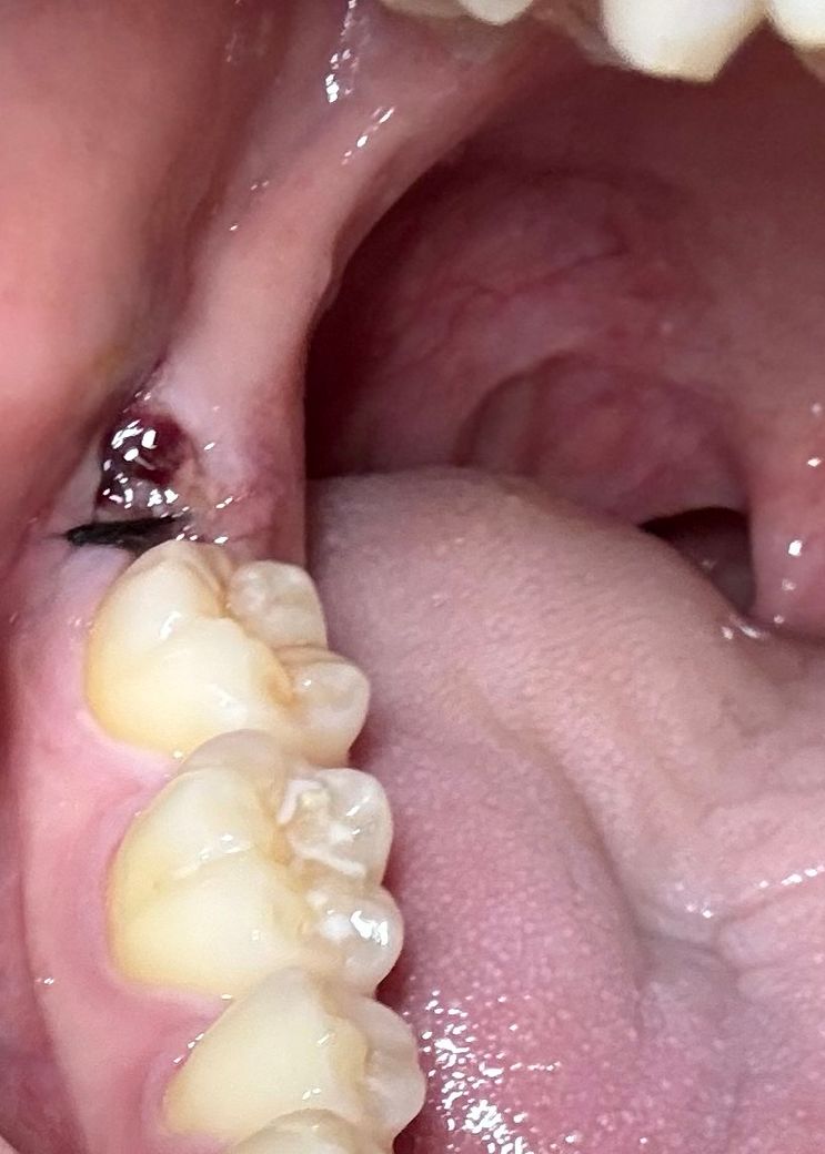 별 이상 없이 지내다 저녁 식사 후 피맛이 약간씩 나서 왼쪽 아래 잇몸 부분 확인해보니 사진과 같은 모습인데 정상적으로 낫은 중일까요?