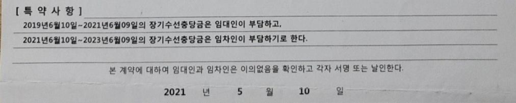 19~21년, 23~25년 장기수선충당금 임차인부담 특약 삽입