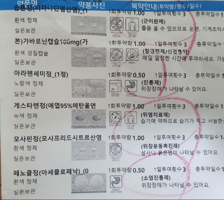 몇주전에 목디스크약 처방받고, 최근에 전립선염 약이렇게 두개를 처방받았는데 처방전 보니까 소염진통제가 중복 되는것 같은데 같이 복용해도 문제 없을까요?