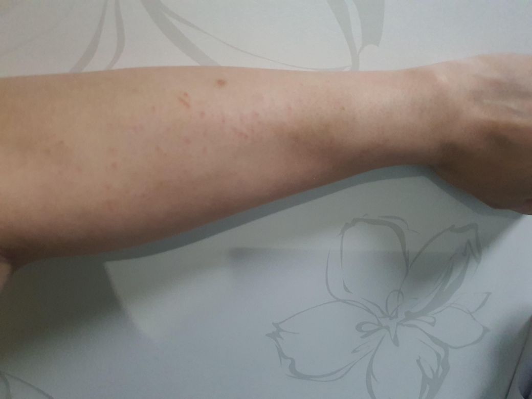 전부터 왼쪽 등에만 좁쌀같이 빨갛게 두드러가 났는데 이제는 오른쪽 팔에만 두드러기가 났네요..