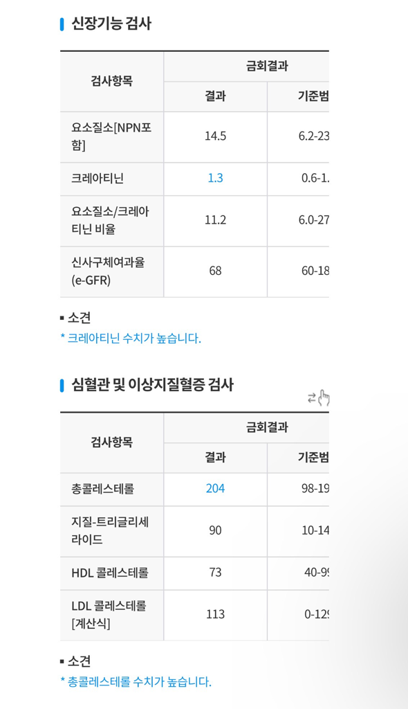 단백뇨 역시 일시적인 경우라면 문제되진 않겠으나 지속되거나 악화시 신장내과 진료를 권합니다.