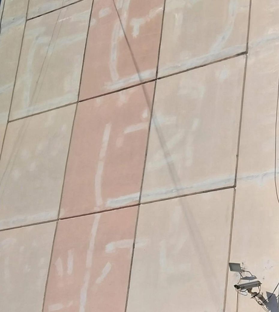 보통 아파트 도색전에 저렇게 칠하는것은 아파트 외벽에 균열이나 미세한 크렉을 채워주는 퍼티일 확률이 매우높습니다.