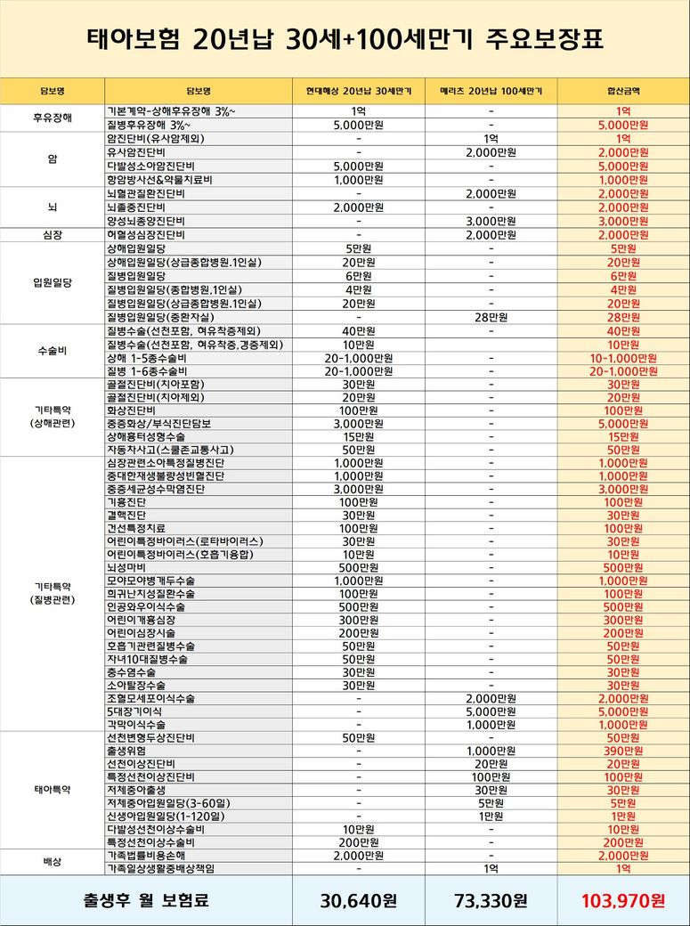 30세는 어릴때만 잠깐 필요한 입원일당, 선천질병 관련 수술, 태아 특약 등이 포함되는데요