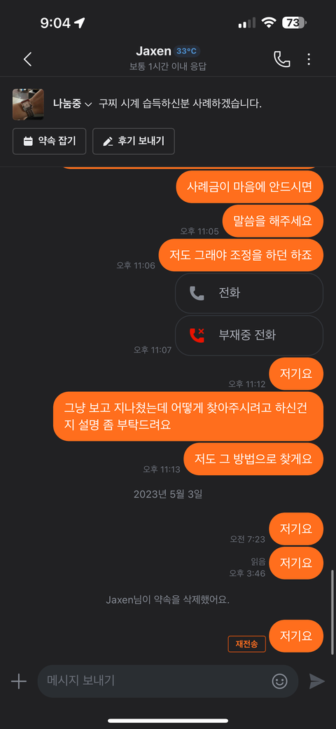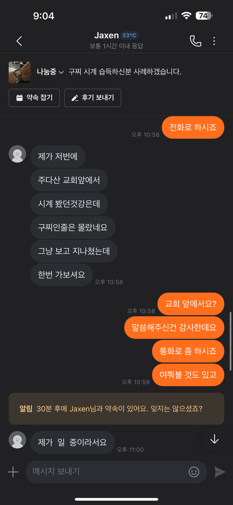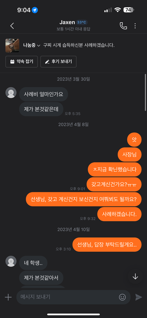 4. 결정적으로 사례금이 마음에 들지 않는지 대화 차단해버림