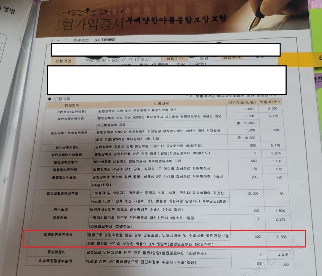 이는 2007년02월 가입하신 실손의료비 보험뿐만 아니라