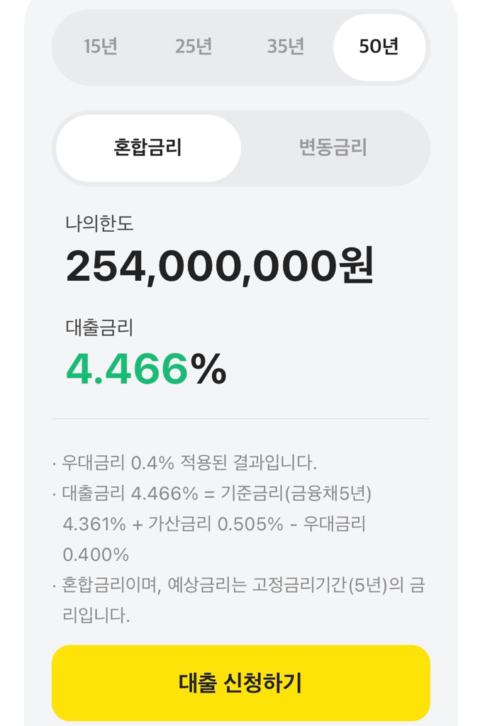 사진에서 대출이자는 4.466% , 연이자를 말합니다. 쉽게 대출금액x4.466%가 1년동안 지급할 이자입니다. 매월 납입하는 원리금의 경우는 상환방식에 따라 매월지급하는 금액의 차이가 있을 수 있습니다, 보통 원금+이자 방식으로 매월 납입하기 때문에 원금이 줄어 이자 또한 줄어드는게 보통이며 원리금균등방식으로 20년 상환을 할 경우 월 납입금액은 160만원정도 될듯 보입니다.