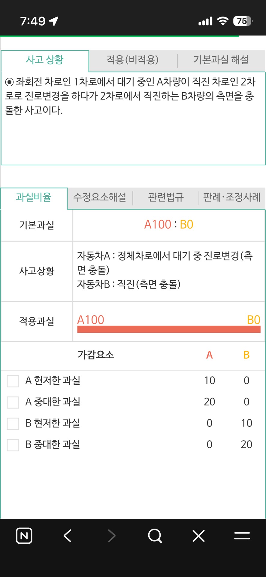 자동차사고 과실 비율에 대해 문의드립니다.