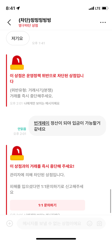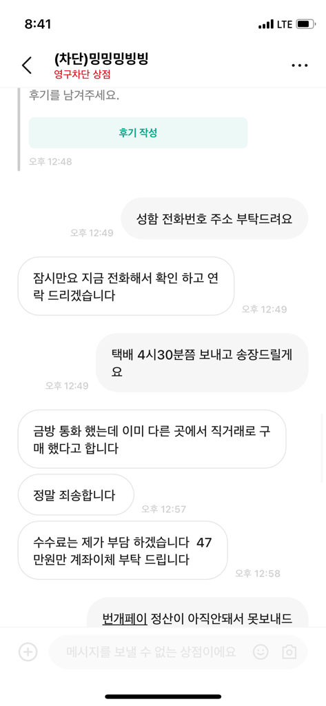 해당 사항은 번개장터에 문의해보셔야 할 것이고, 현재 상황에서는 달리 어쩔 방법이 없다면 일단 상대방이 연락이 오기를 기다려보셔야 할 것입니다.