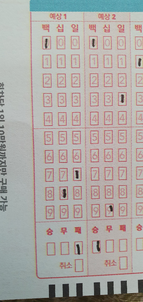 사진은 복권접에 파는 스포츠토토 용지인데 예를들어 첫번째 경기에 언더로 하고 싶으면 용지에 빝에 승에다 표기해야 하나요? 아니면 패에 표기해야 하나요?