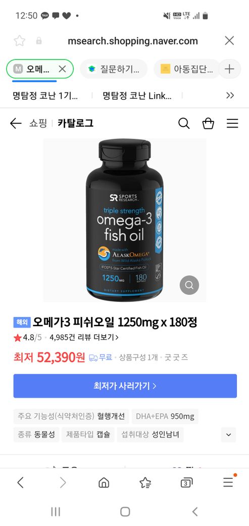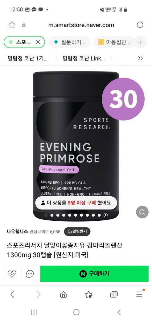 스포츠리서치 오메가3(하루3알복용), 스포츠리서치 달맞이꽃오일(하루2알복용)이 의심됩니다.