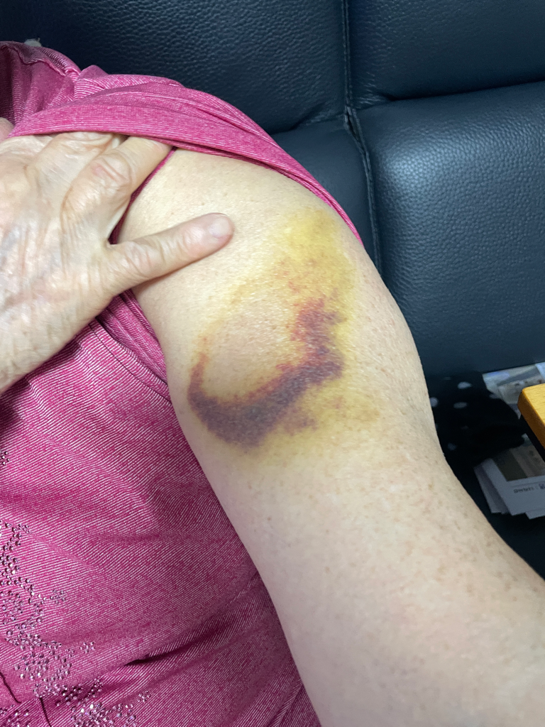 저녁부터 꼬리뼈 통증, 머리를 부딪힌 부분에 혹, 팔에 멍 증상이 생기기 시작했고 가족들이 걱정할까봐 숨기고 있던걸 알게 되었습니다.