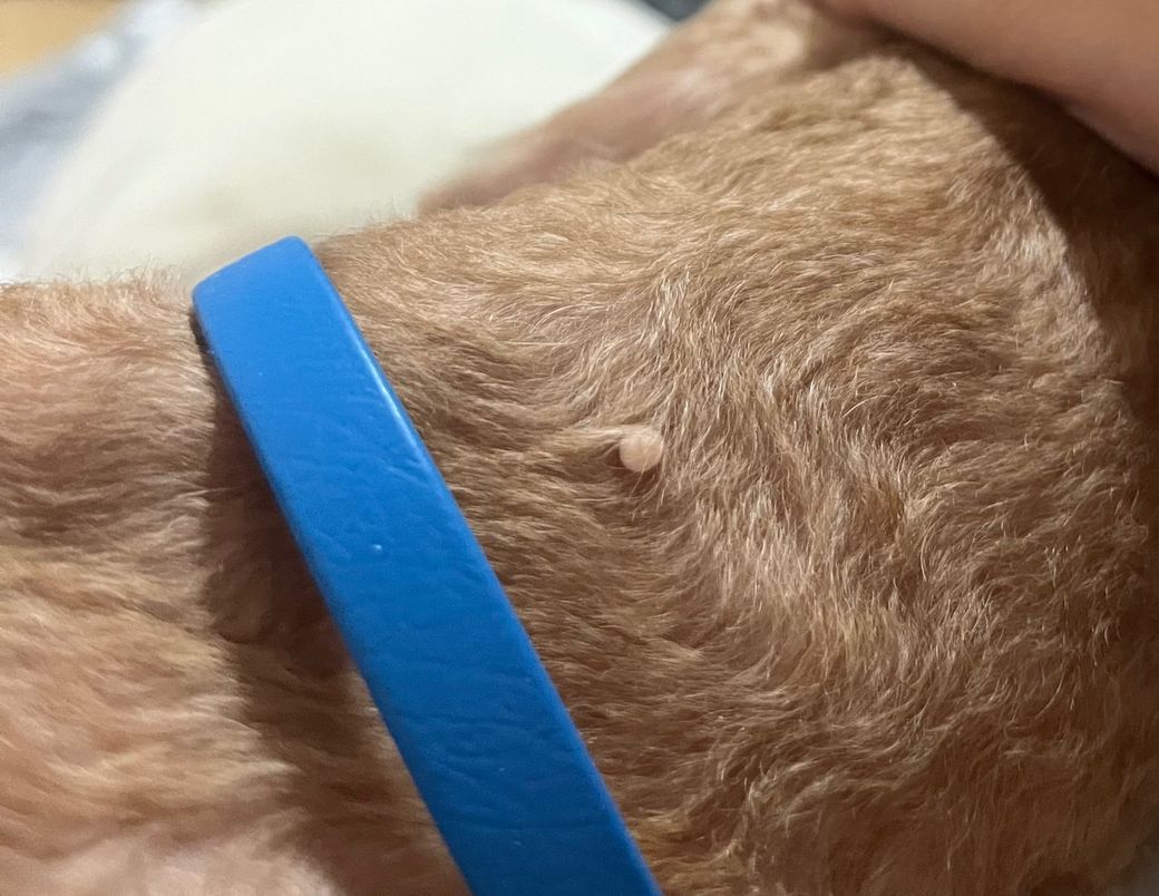 현재 형태로 보아 가장 가능성이 높은 것은 피지선 낭종입니다. 피지선 낭종은 피지선이 막히면서 피지와 각질이 내부에 쌓여 형성된 양성 병변입니다. 사람 여드름과 비슷하다고 보시면 됩니다. 이 외로도, 지방종도 고려 가능하나, 지방종은 대체로 피부 아래 피하층에서 부드럽고 잘 움직이는 종괴로 나타나기 때문에, 이번처럼 피부 표면으로 뚜렷하게 돌출된 양상이라면 가능성은 다소 낮습니다. 유두종(사람의 사마귀와 동일 질환) 가능성도 있습니다.