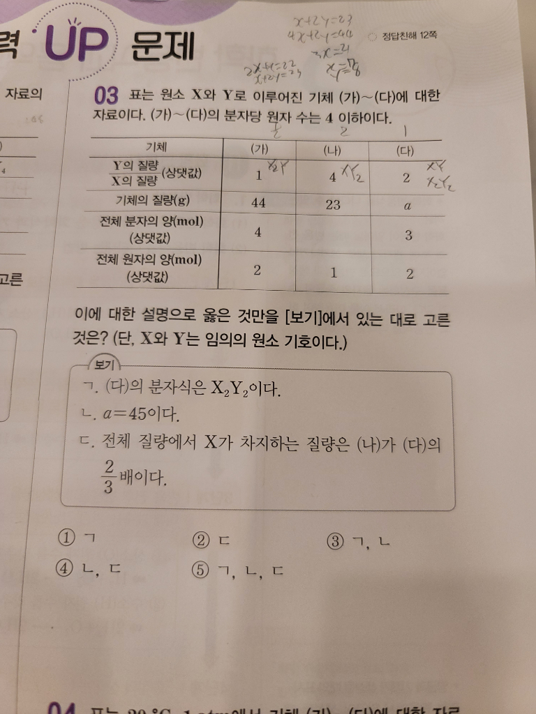 전체 분자의 양이 4:3인건 알겠는데 왜 가 다에 포함된 전체 원자의 양이 같은지 그리고 왜 3:4인지 모르겠어요 제발 알려주시면 감사드리겠습니다!