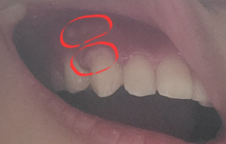 사진이 잘 보이지 않아서 명확하게 답변을 드리기 어렵지만, 뜨거운 음식을 드셔서 그쪽에 상처가 낫을 가능성과 잇몸에 염증이 생겻을 가능성이 잇으니 일단 치과에 가셔서 검진을 받아보세요. 크게 문제가 잇는건 아닌거 같습니다.