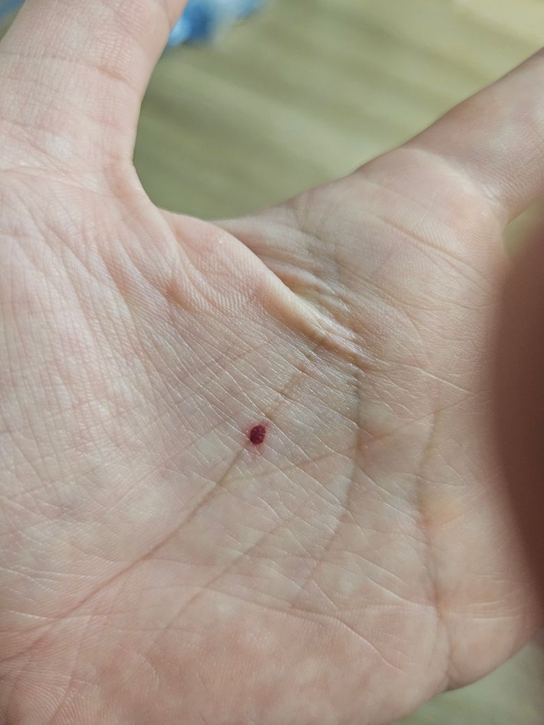 손바닥에 멍같은게 생겼습니다.. 왜생겼는지 모르겠네요... 아프진않은데 괜찮은건지 걱정되네요!! 사진을 첨부했습니다!