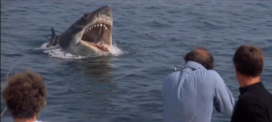1편의 경우, 은밀하게 실체를 가렸던 연출에 힘입어 도리어 현실의 백상아리보다 더 오싹해 보이는 면이 있다. 더불어 1편은 기술 및 촬영 문제로 호주 연안에서 호주의 저명한 상어 전문가이자 사진가인 론 테일러와 발레리 테일러 부부의 도움을 받아 실제 백상아리들이 있는 촬영분도 함께 삽입되었다