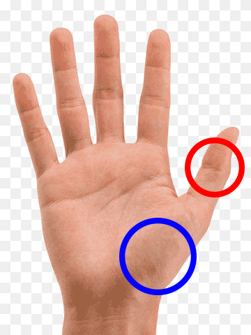 현재 오른손의 상태를 말씀드리자면 빨간색으로 표시된 엄지손가락 부분은 굉장히 불편감을 느끼고 있습니다. 스마트폰을 할때에도 손가락이 마음대로 움직여지지 않습니다. 저는 움직이려고 하는데 실제로는 움직임이 둔하거나 마비가 굳어있습니다.