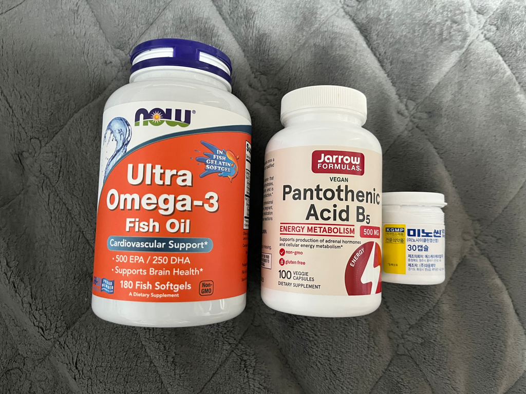 미노씬 / 판토텐산 / 오메가3 / 비오틴은 서로 상호작용하지 않기 때문에
