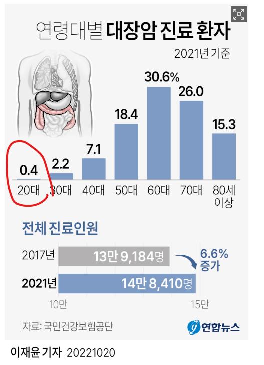특히 20대 젊은 성인이 대장암의 가능성은 높지 않습니다.