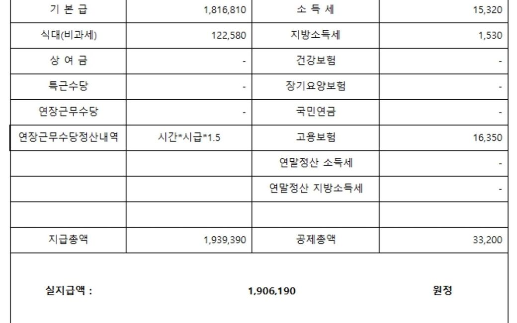 주 5일, 1일 8시간 근무한다면, 3,200만원÷12개월÷30일×20일+3,200만원÷12개월÷209시간×4시간×1.5=1,854,333원(세전)입니다.