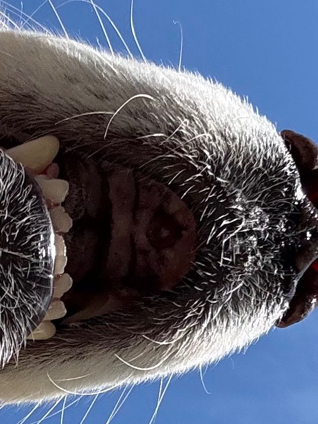 입천장 중앙 부근에 위치한 붉고 둥근 돌기는 절치유두라고 불리는 정상적인 해부학적 구조물로 공기 중의 화학 신호를 감지하는 야콥슨 기관과 연결되어 있습니다. 평소 식욕이나 활동성에 문제가 없다면 질병이 아니므로 제거하거나 치료할 필요가 없으며 인위적으로 자극하는 것은 오히려 통증을 유발할 수 있습니다. 중앙의 하얀 부분 역시 조직의 자연스러운 형태일 가능성이 높으나 크기가 급격히 커지거나 주변부로 염증이 번지는 양상을 보인다면 구강 종양이나 농양 여부를 확인하기 위해 진료를 받아야 합니다. 현재 상태에서는 특별한 처치 없이 경과를 관찰하는 것으로 충분합니다.