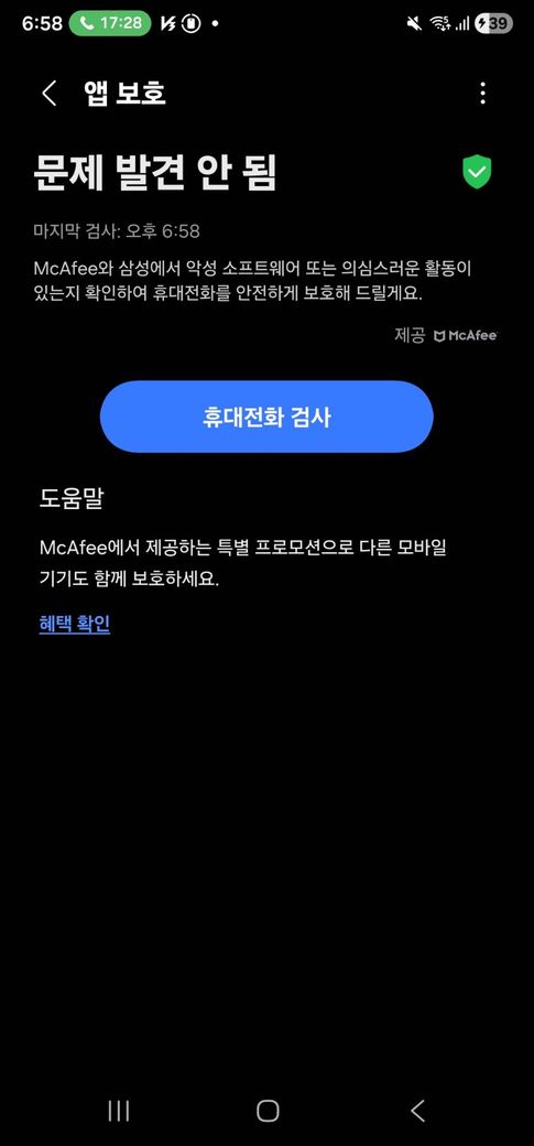 시티즌 코난과 V3 security를 깔아서 악성코드 검사를 한뒤, 갤럭시 디바이스 케어에서도