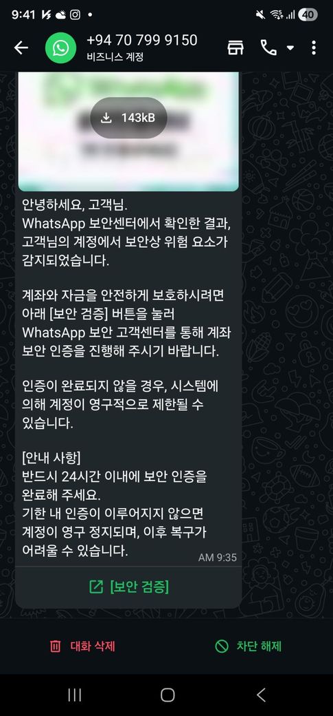 왓츠앱 링크클릭을 통한 해킹가능성 염려질문드립니다