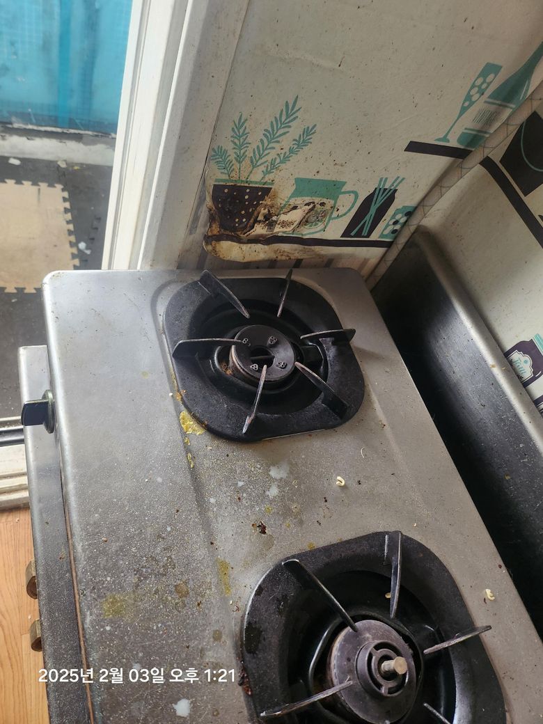 해당 부분은 가스레인지와 벽 사이의 거리나 구조적인 문제로 보이므로, 정상적인 사용으로 발생할 수 있는 문제이기 때문에