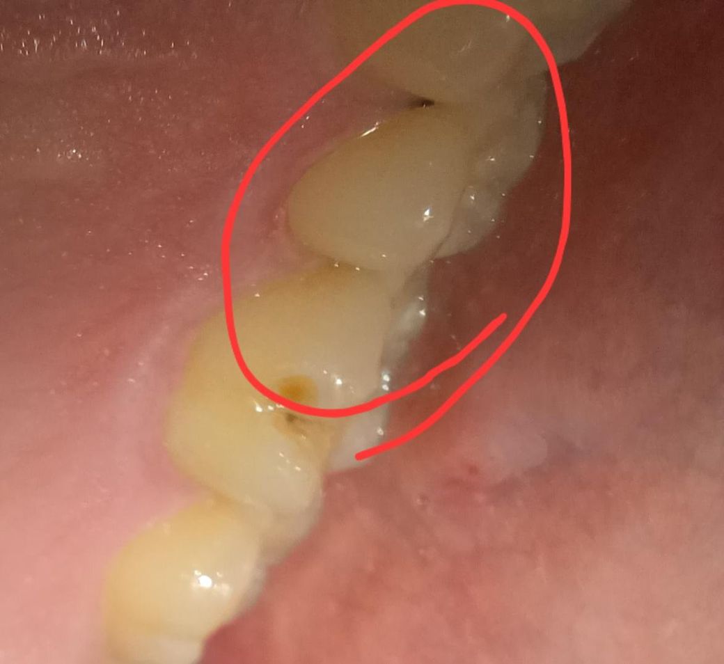 검은색으로 보이는 부분은 착색일 수도 있지만 충치일 수 있습니다. 충치라면 치료가 필요할 수도 있습니다.