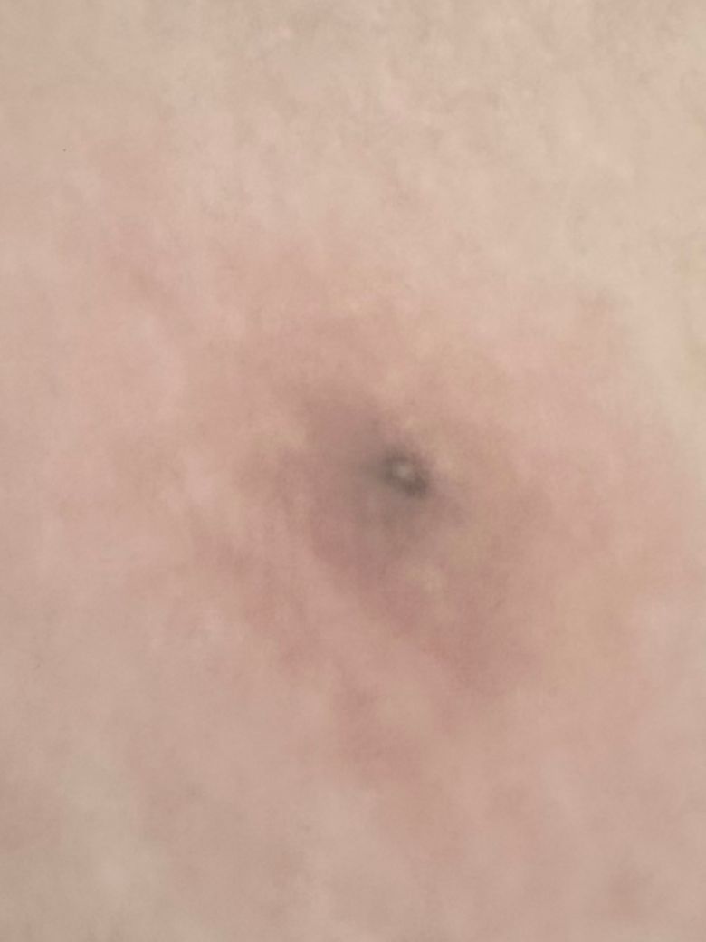 허벅지에 검은색 깊게 박혔는데 부어오르고 단단해요