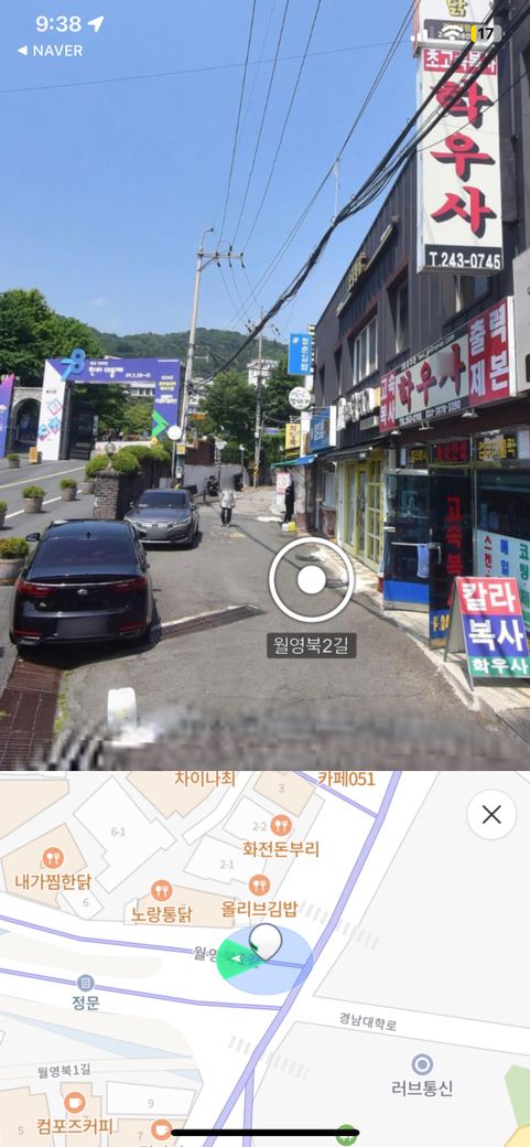 먼저 도로 상황부터 설명드리면 사진과 같이 골목길 들어가는 입구입니다.(창원시 경남대학교 정문 옆입니다.)