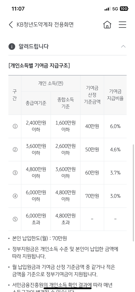1번 구간에 해당하시는 경우에는 월 50만원을 넣게 되시면 40만원까지는 정부기여금을 받으시게 되고 추가로 납입된 10만원에 대해서만 정부기여금을 받지 않으시게 되세요.